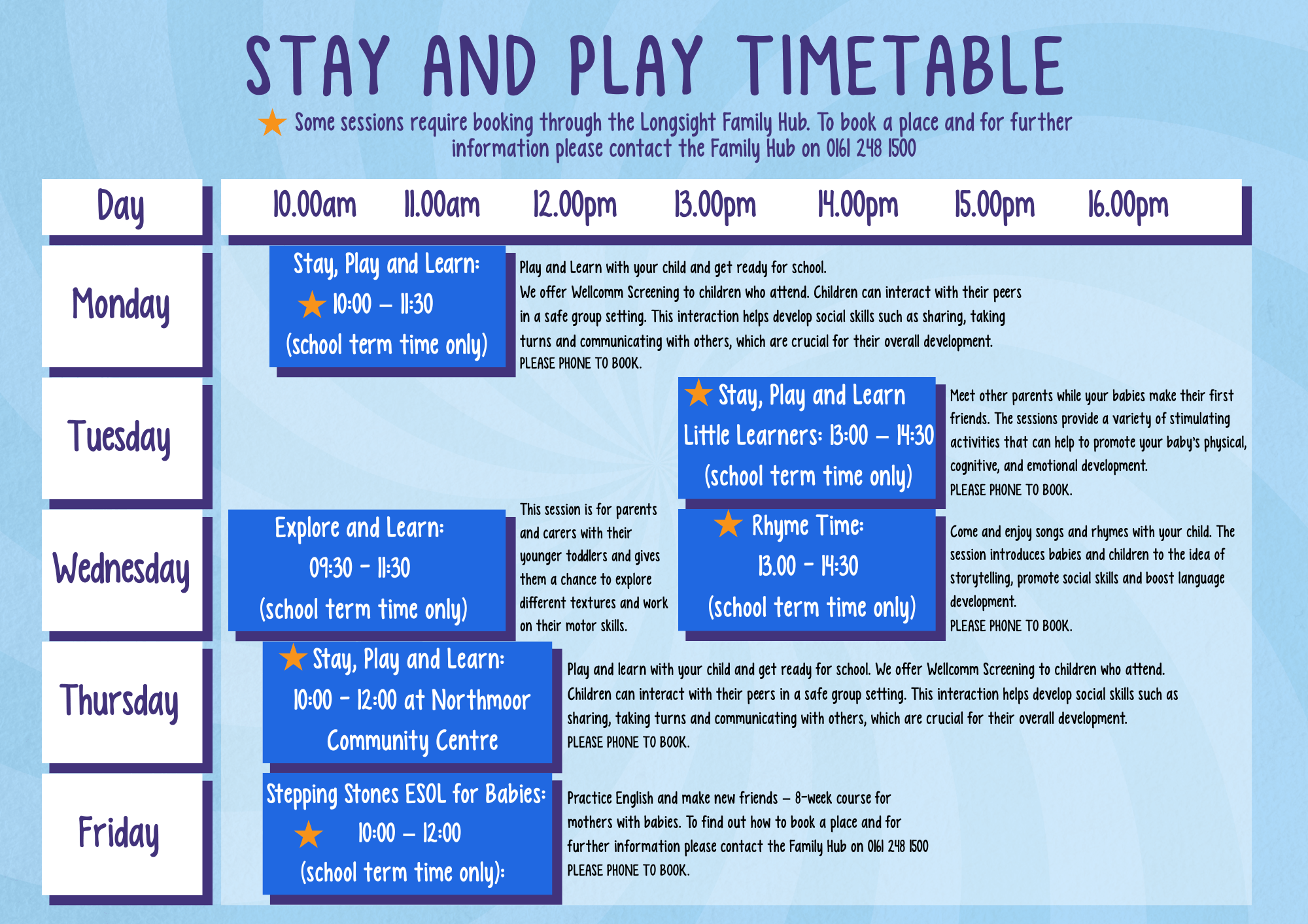 Please find below information on our Stay and Play for 2025/2026: