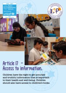 Our Year 6 class worked with our designer and photographer from The Big Life Group to create digital images of the rights that our children want to enjoy. They focused on the following articles from the CRC:
