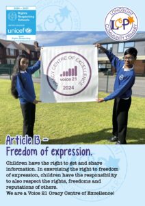 Our Rights Respecting Create day takes place every year. It is a wonderful day where our children have the opportunity to describe how they enjoy their rights through the medium of creativity, culture and art. Every year group shares their creativity in a different way, from which rights are the most important to them, to what make them unique and embraces identity. The highlight is always seeing each finished piece shared during our school assembly for everyone to see!