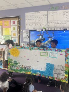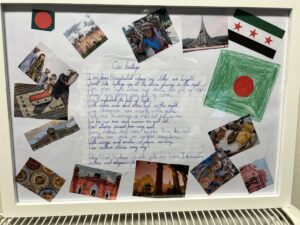 The Year 5 children also focused on their heritage by writing poems surrounded by images, words and symbols of what makes them unique.