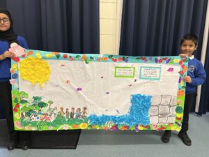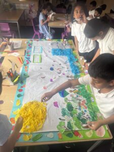 This piece of collective artwork focused on Article 24 – the right to health, clean water and a clen environment and the Global Goals of Life on Land and Under the Sea.